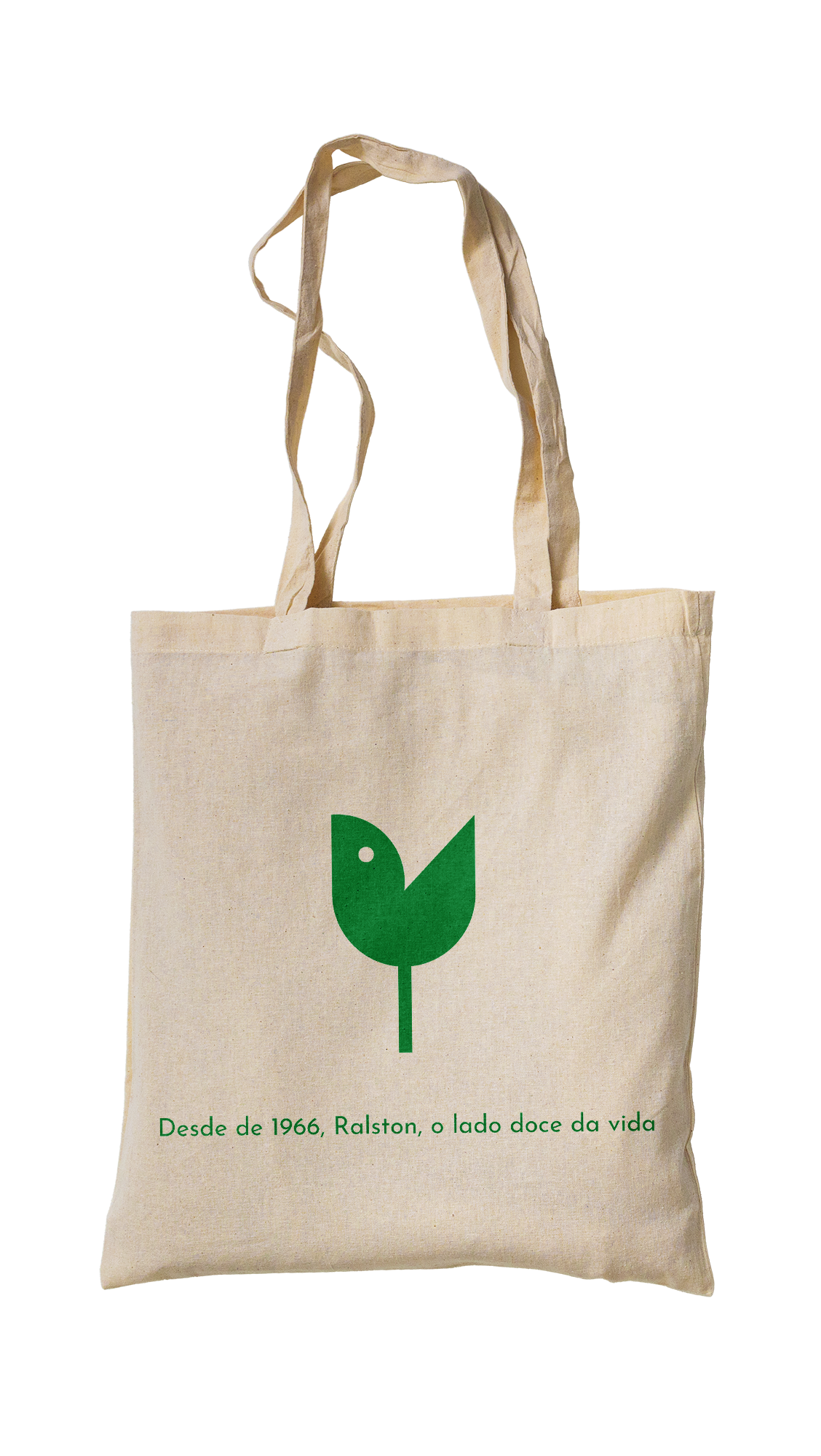 Tecido cru com nossa logo e nossa frase "Desde 1966, Ralston, o lado doce da vida"
