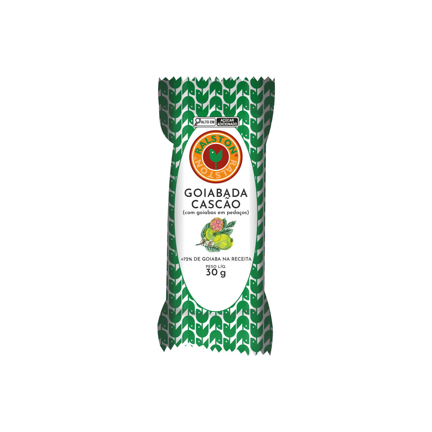 Essa é a Goiabada Cascão 30g Ralston: nossa releitura da goiabada cascão caseira tradicional. Feita especialmente para adoçar o dia-a-dia numa pequena porção, para aquele momento único. Produzida com goiabas do nosso pomar e de produtores homologados, colhidas e selecionadas manualmente. Com pequenos pedaços de casca de goiaba, o sabor mais intenso de fruta. Adoça a vida.